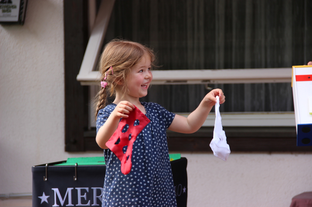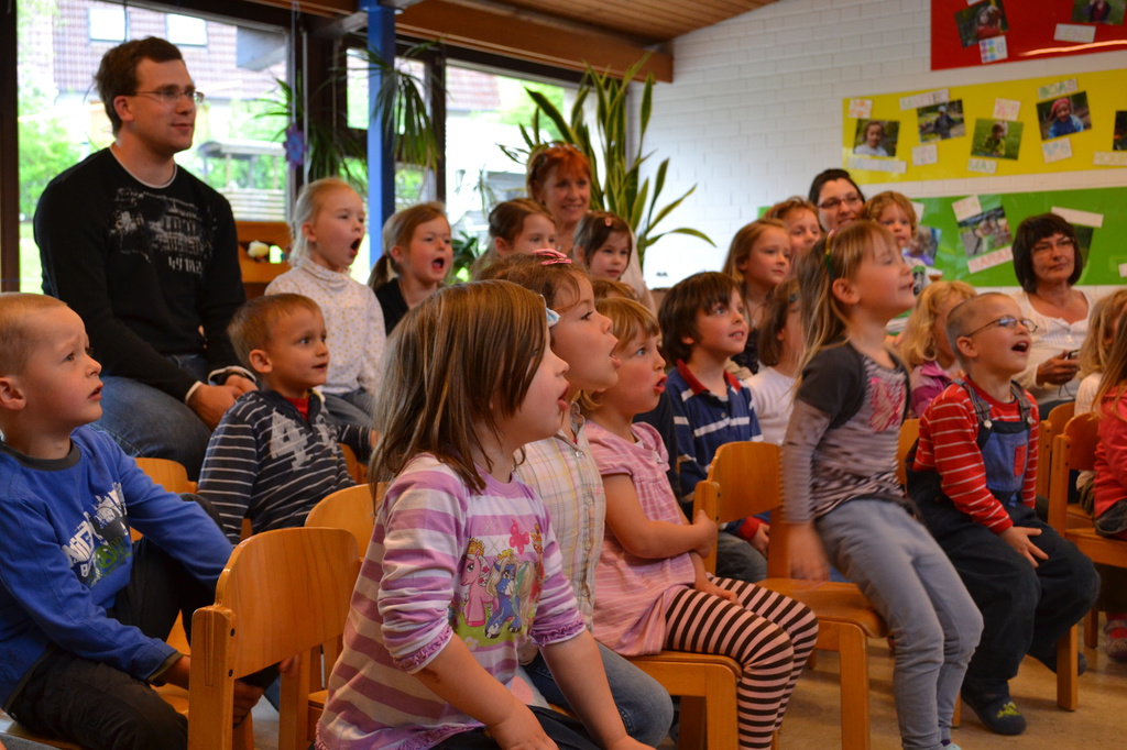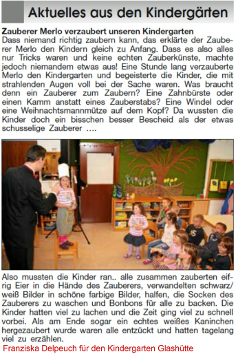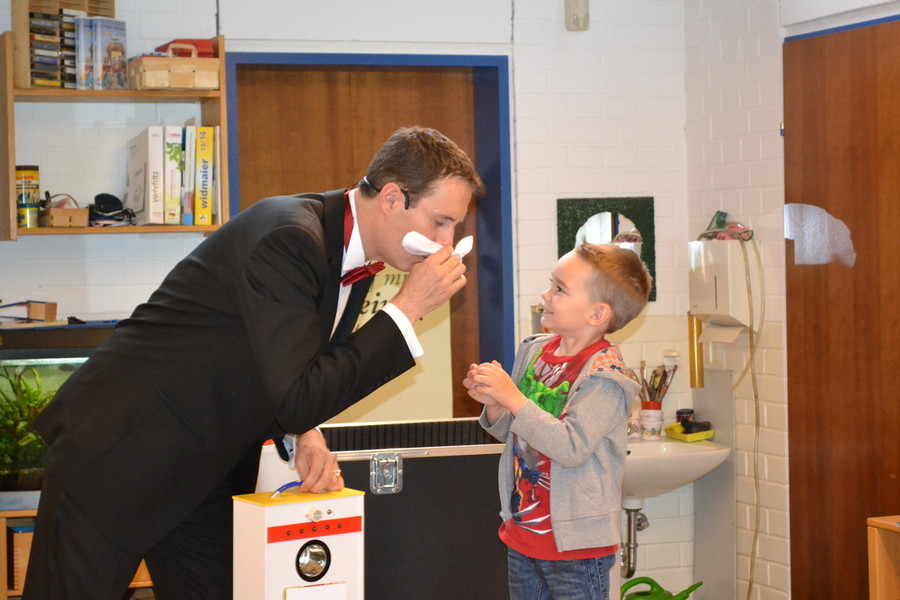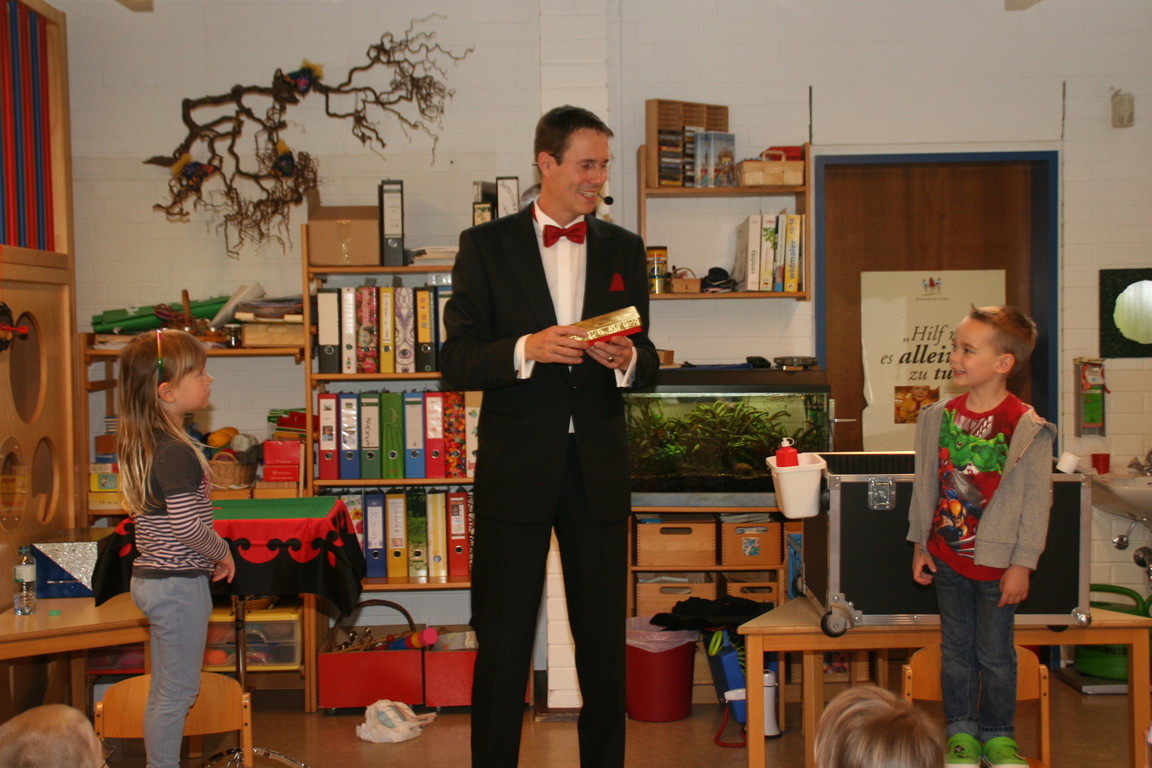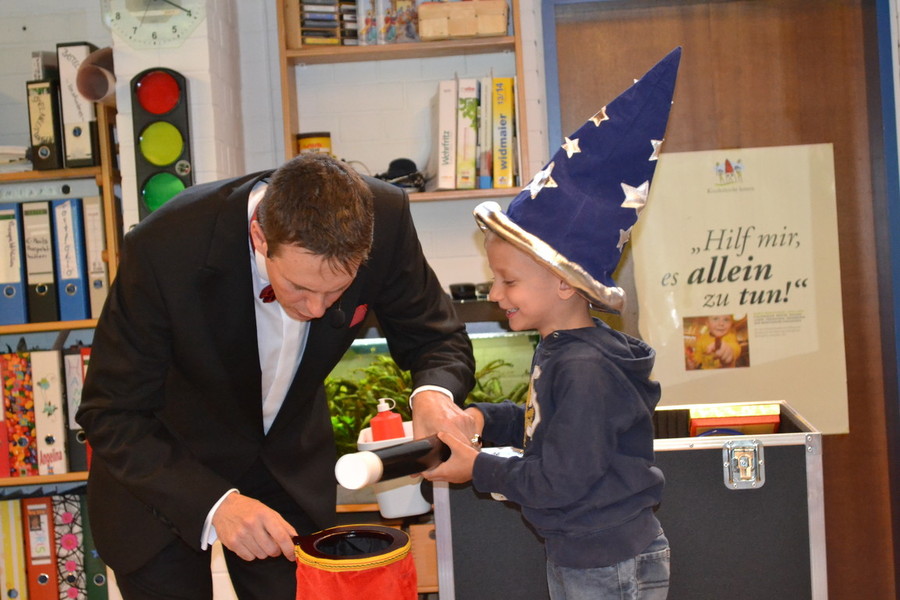 Wenn die Kinder plötzlich Eier oder Tücher herbeizaubern, Dinge sich verwandeln oder der Zauberer mal wieder zu schusselig ist ... dann strahlen die großen Kinderaugen. Mal fragend, mal lachend und immer voller Begeisterung!